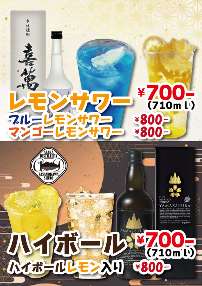 ハイボール、レモンサワー