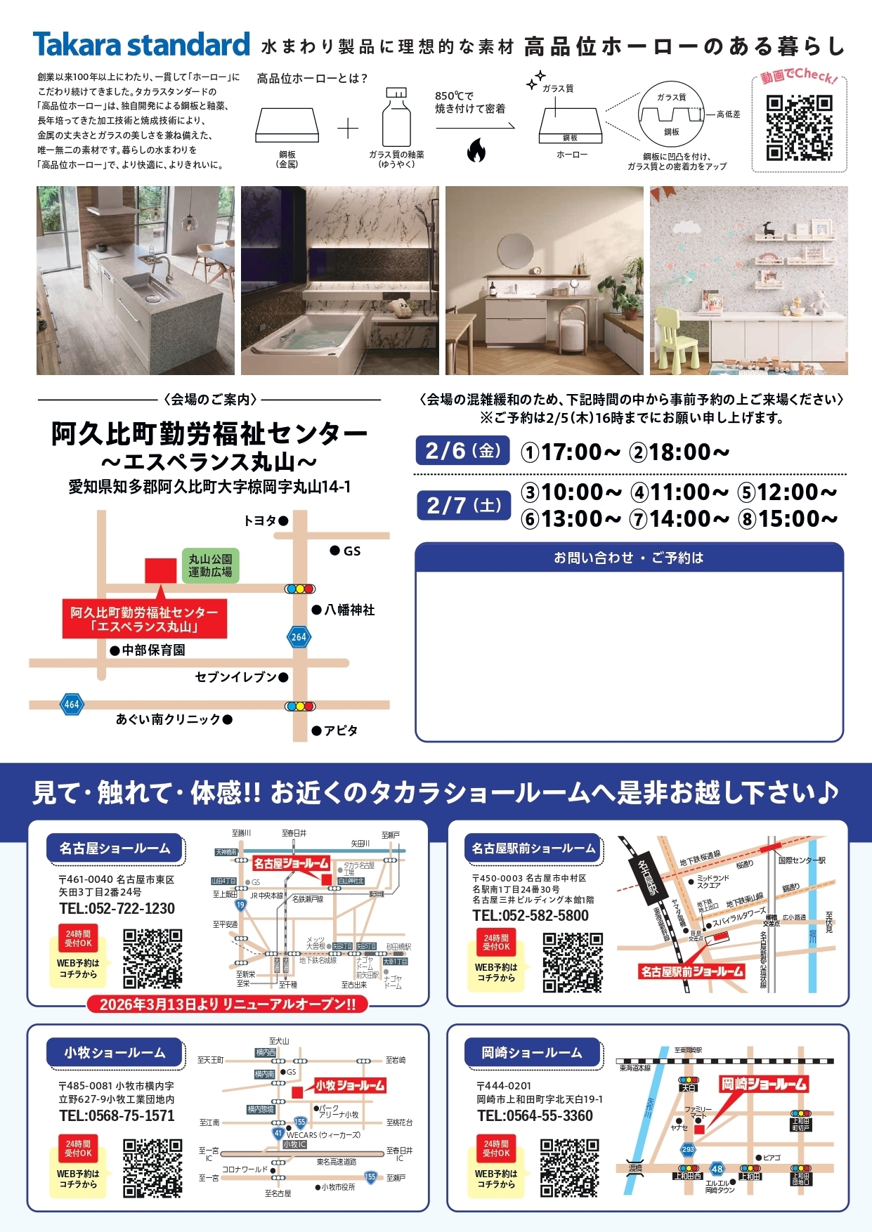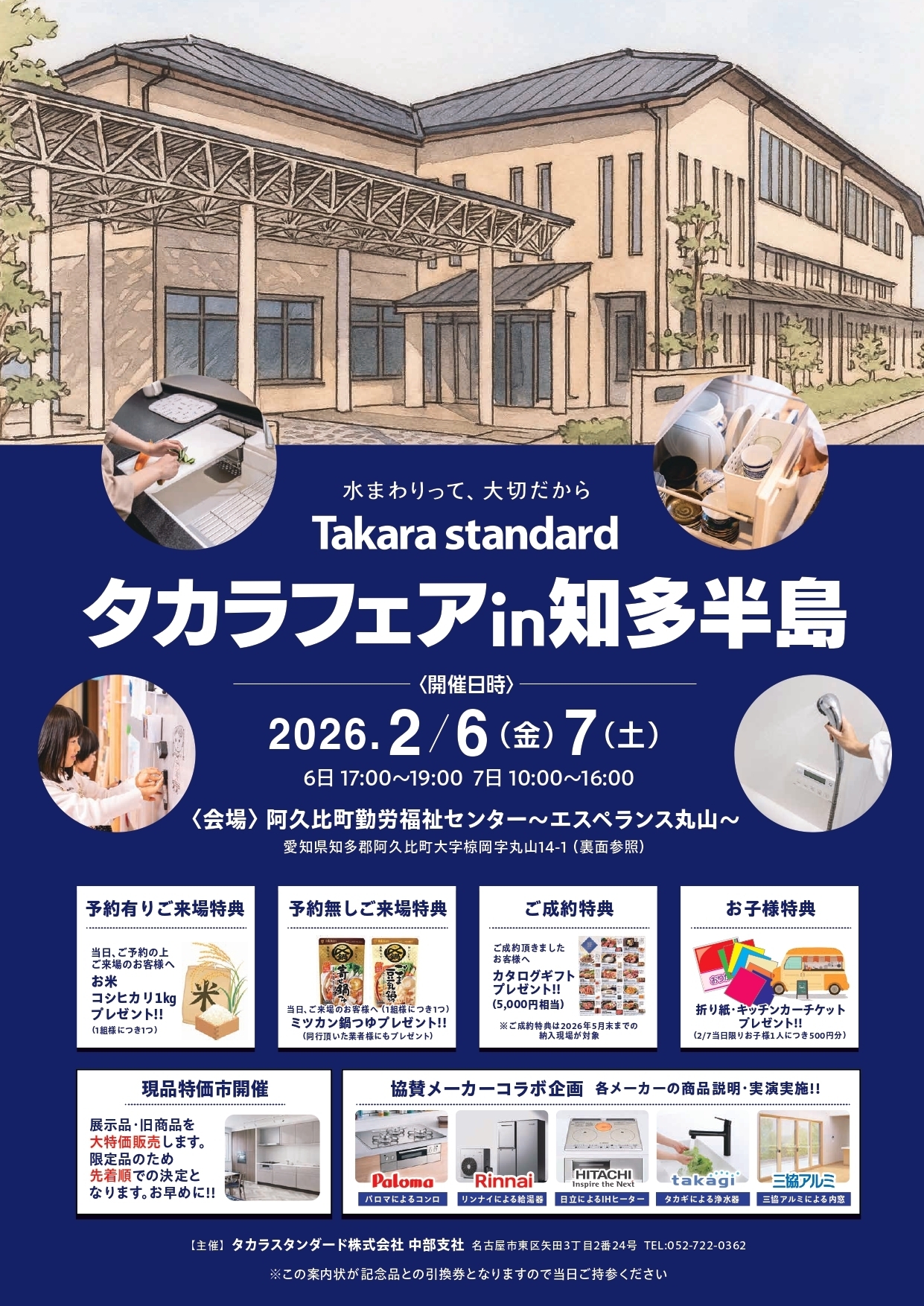 タカラスタンダード(株)主催の出張ショールームイベント開催!システムキッチンやシステムバスを知多半島でご見学いただけます。リフォームご検討のユーザー様は是非ご来場下さい!