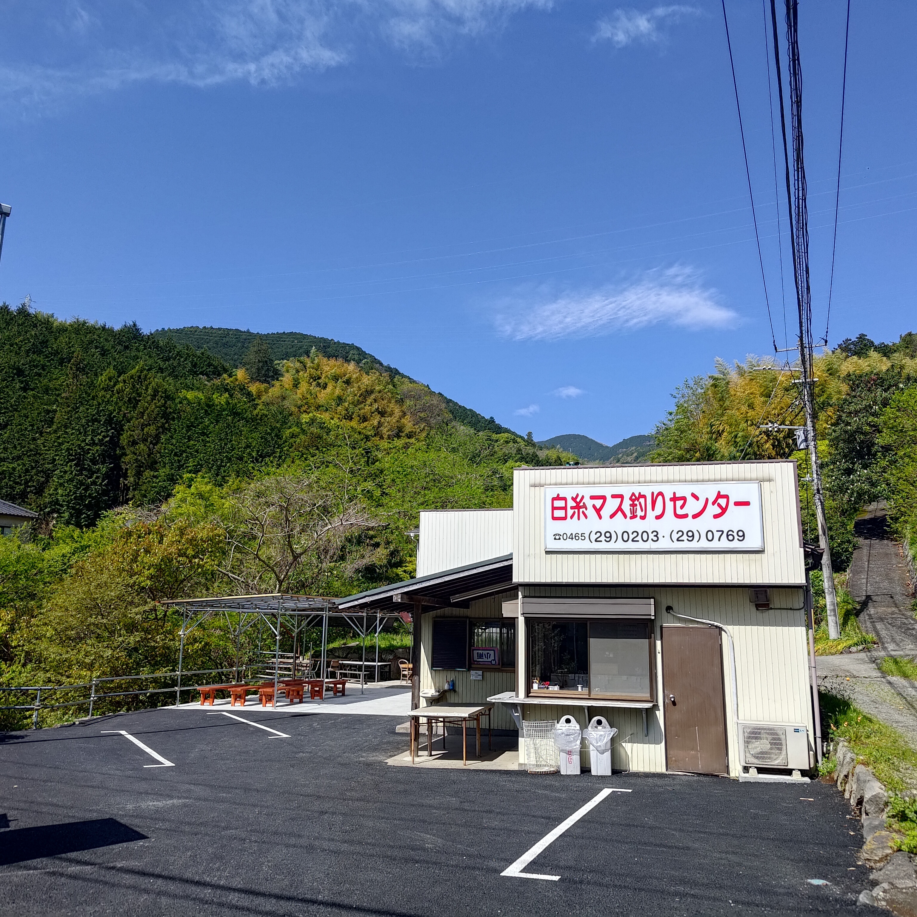 都心から90分、JR根府川駅から徒歩10分。清流「白糸川」沿いにある、自然の中で気軽にマス釣りが楽しめる体験施設です。