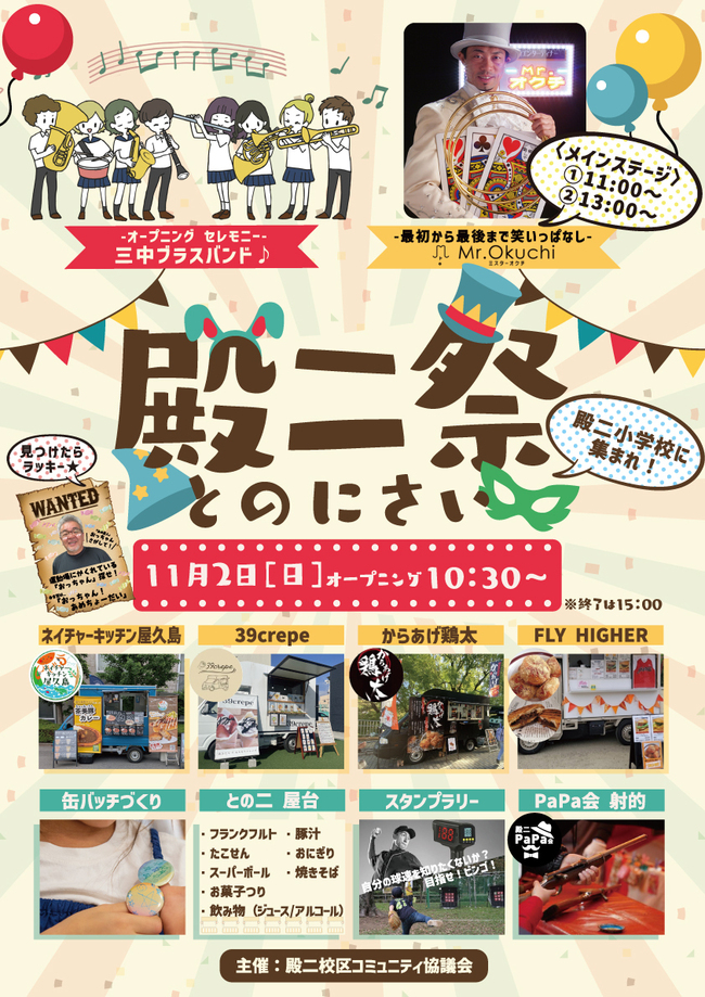 じゃがバター、クラフトコーラ、レモネード、チューハイ、ビール、タコさんウィンナー串、削りいちご、牛すじ串、チキンステーキ串、かき氷、フルーツ飴、冷やしきゅうり串、ミニ揚げパン、チュロス、フライドポテト、綿菓子、国産牛すじ飯、牛すじカレー、ミニカレー、フランクフルト、水あめ