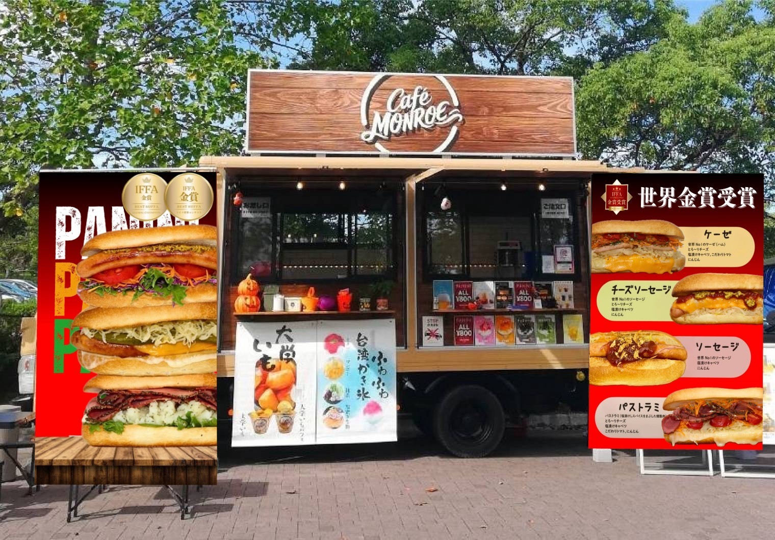 当キッチンカーは存在感&清潔感が有り映えるキッチンカーです。 類似商品(ホットサンド·ホットドック·ハンバーガー)にも負けない実績が有ります。 元気な女性中心のチームでイベントに華を添えれると思います