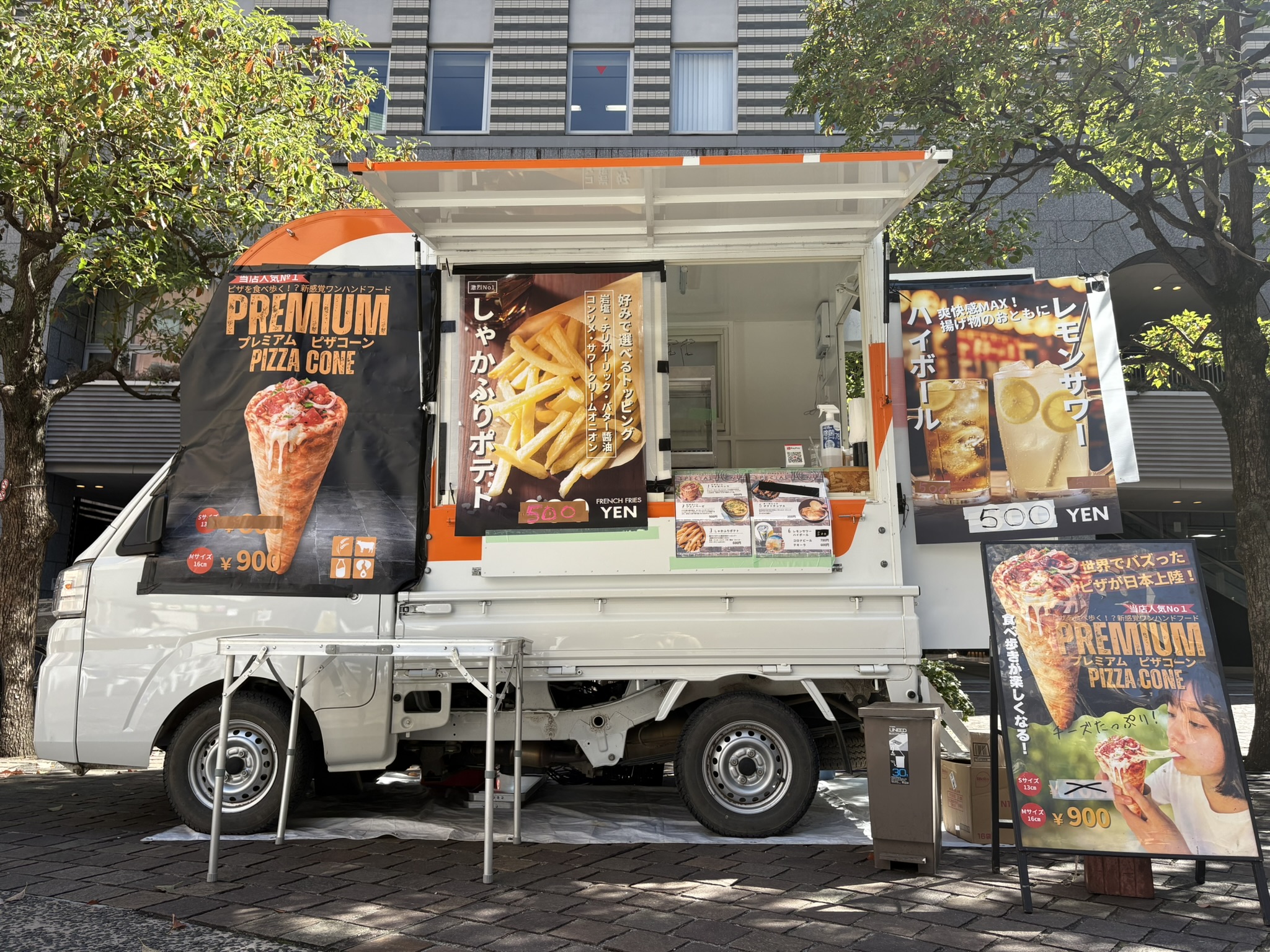 従来のピザはシェアして食べたり、箱に入れて持ち帰ることが多く、屋外イベントや移動販売では少し扱いにくい面がありました。そこで誕生したのが「ピザコーン」です。