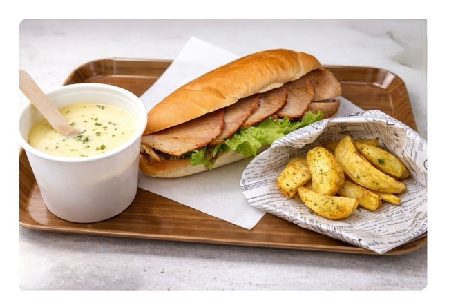 秘伝の甘いタレに染み込ませたバラ肉をパンにサンドした元祖浅草サンドをメインに