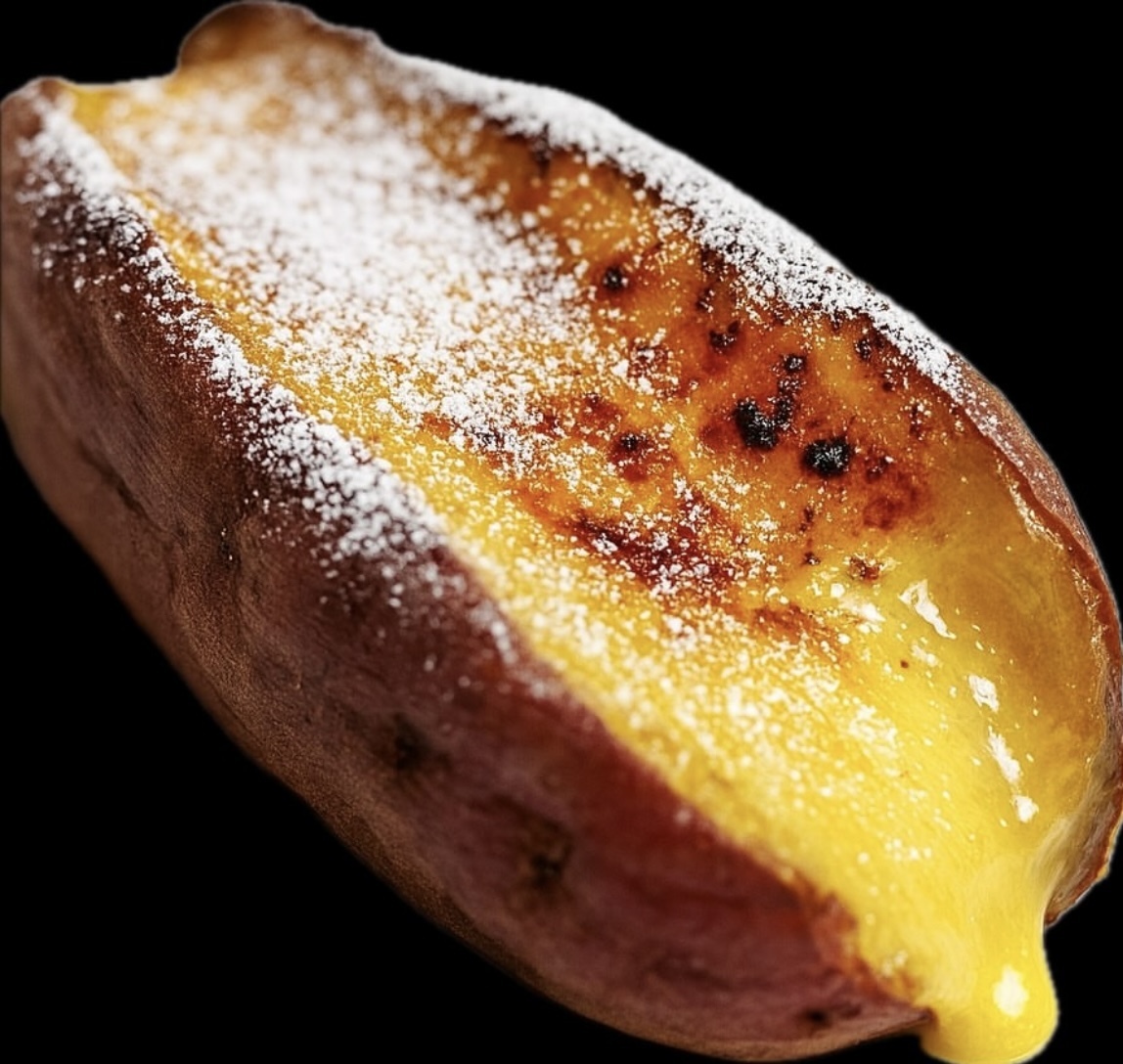 とろとろの蜜芋に自家製カスタードクリームを挟み、バーナーでブリュレに仕上げております。