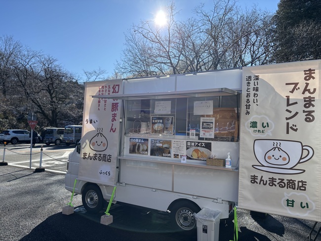 セイロで蒸し上げた本格豚まんとこだわり抜いた高品質のコーヒーのお店です。豚まんは大きくて、皮はもちもち具はギッシリ、心も身体も満たします。ここでしか味わえないオリジナルの『まんまるブレンド』が相性抜群です。醤油アイスわらび餅添えはまるでみたらし団子?!なようなビックリする美味しさです。シンプルなのに食事、ドリンク、スイーツが揃っています。車は真っ白で、スタッフがコーティングし、まめに洗車しているので、ピカピカです。まんまる商店のキャラクター「まんまるちゃん」とスタッフがまんまる笑顔でみなさまの来店をお待ちいたしております。