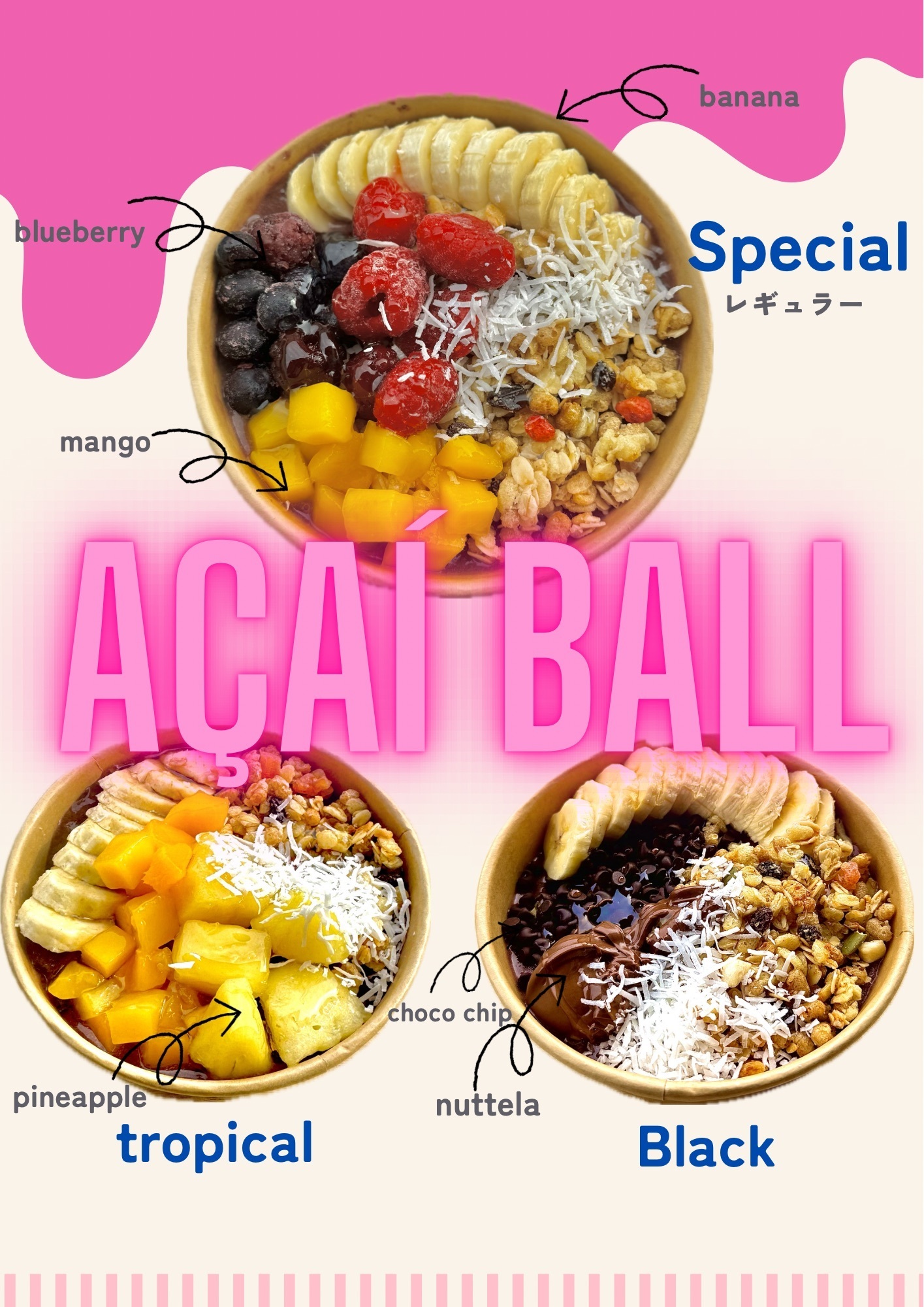 ばななじゅーすはプレーン、黒胡麻、エスプレッソと種類豊富に取り揃えております!