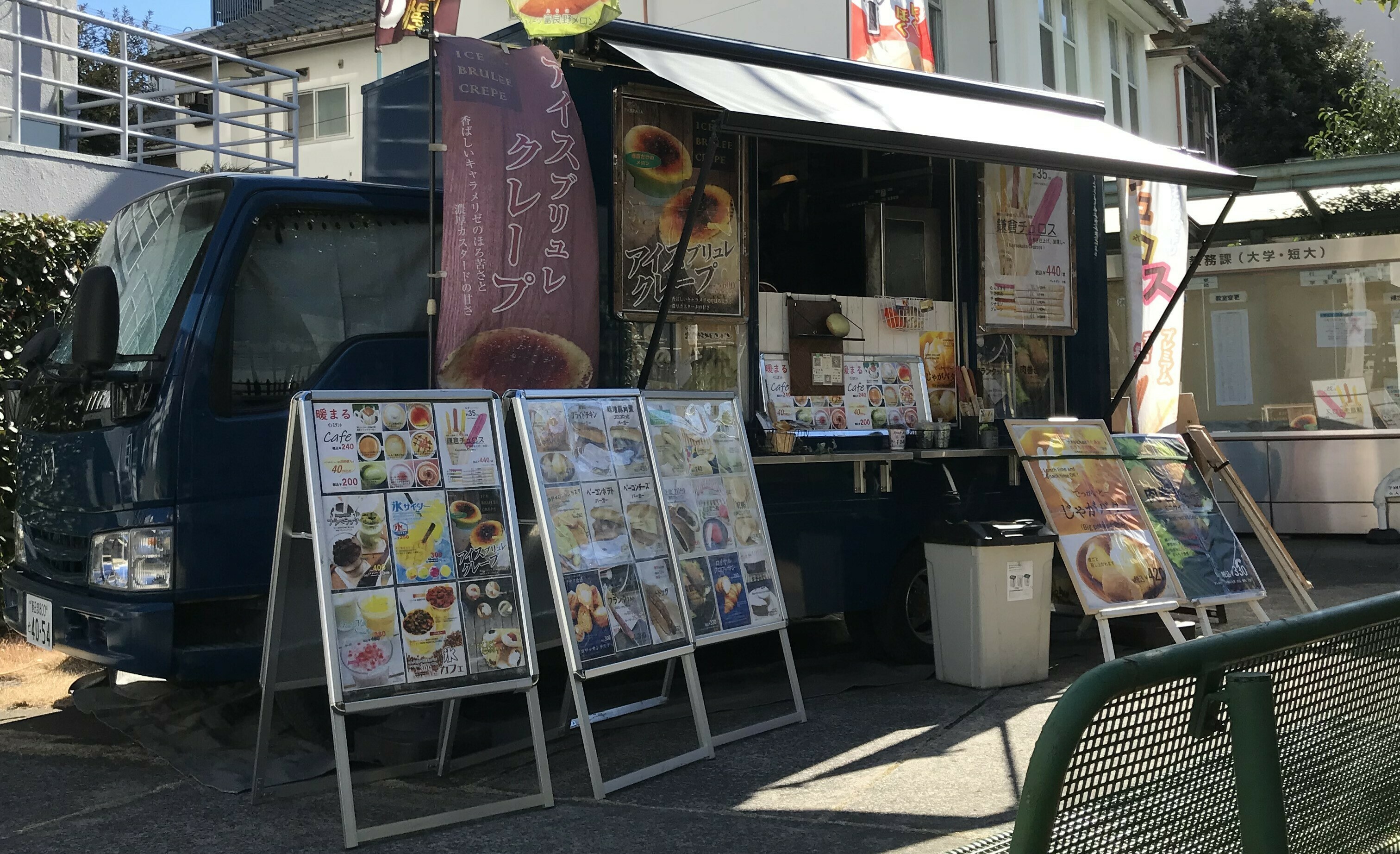 車内のガスオーブンで焼き上げた、焼きたての「富良野メロンパン等の菓子パン各種」や「オリジナルバーガー各種」や「肉巻きおにぎりミニサイズ」等の軽食、「長~い鎌倉チュロス」や「でっかいどーじゃがバター」や「アイスブリュレクレープ」や「スティックアイスクレープ」等スイーツ、「氷サイダー」「氷カフェ」「アイスミルクスムージー」「フラペラッタ」等アイスドリンクやインスタントホットドリンクも同時に提供します。
