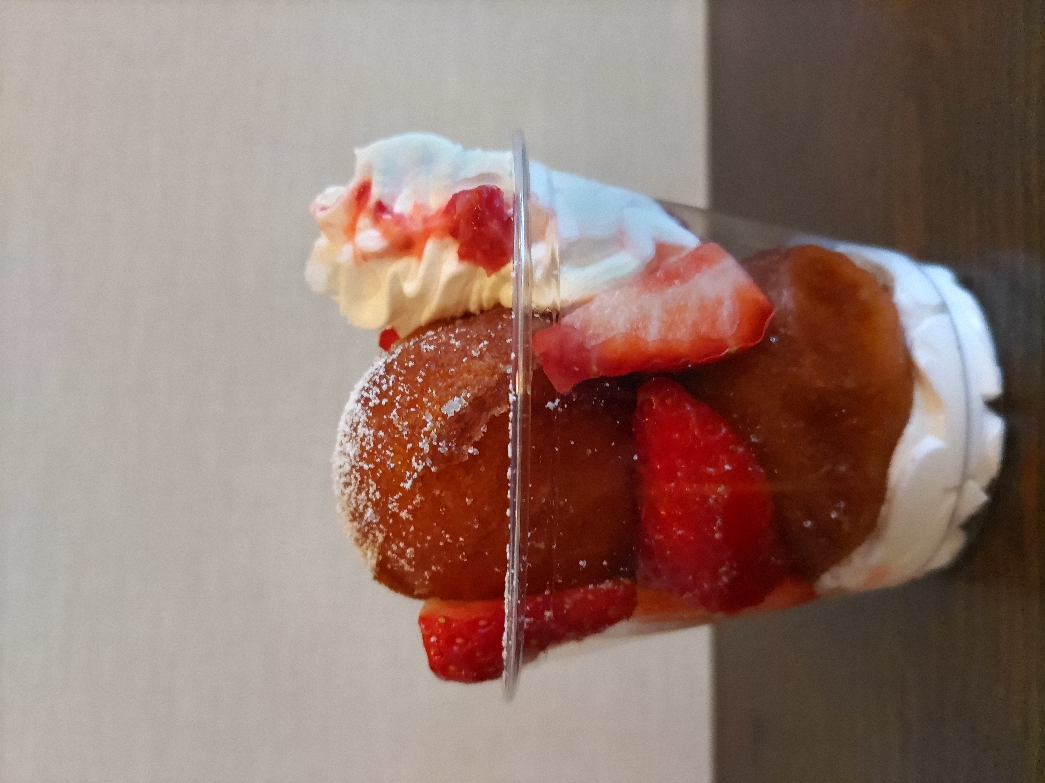 自家製もちもち生地のクレープ、とうふドーナツ、いちごスムージー